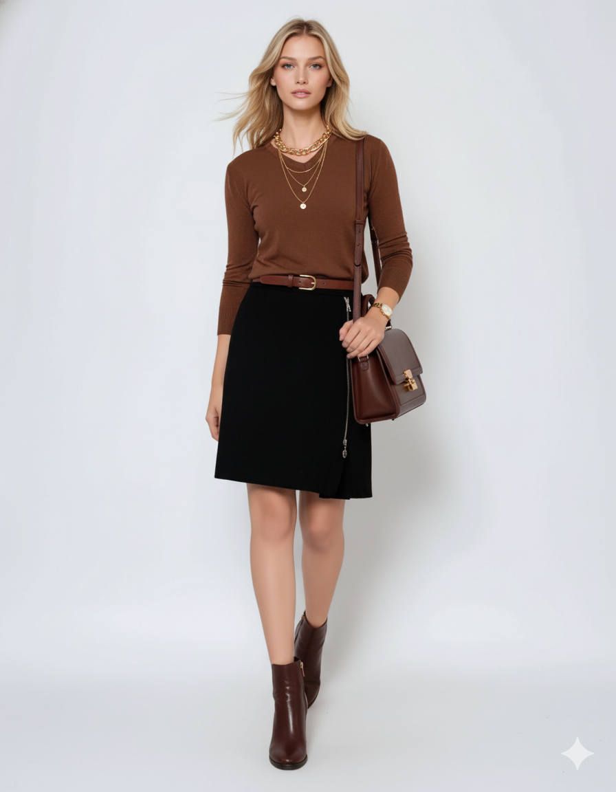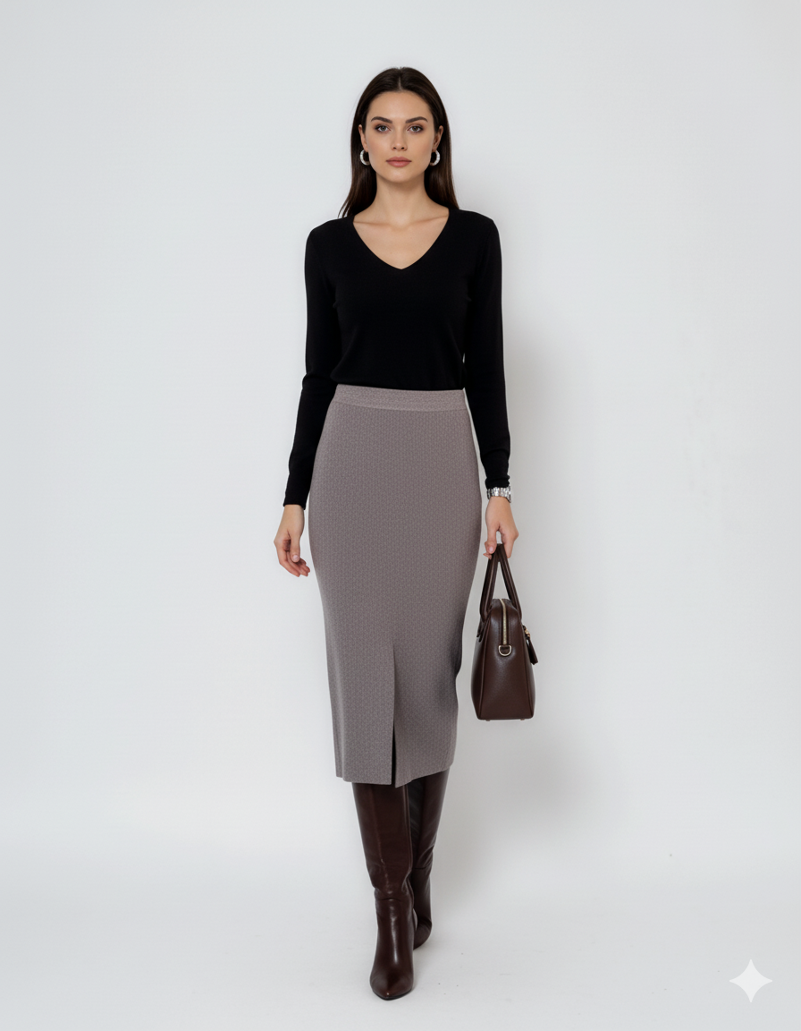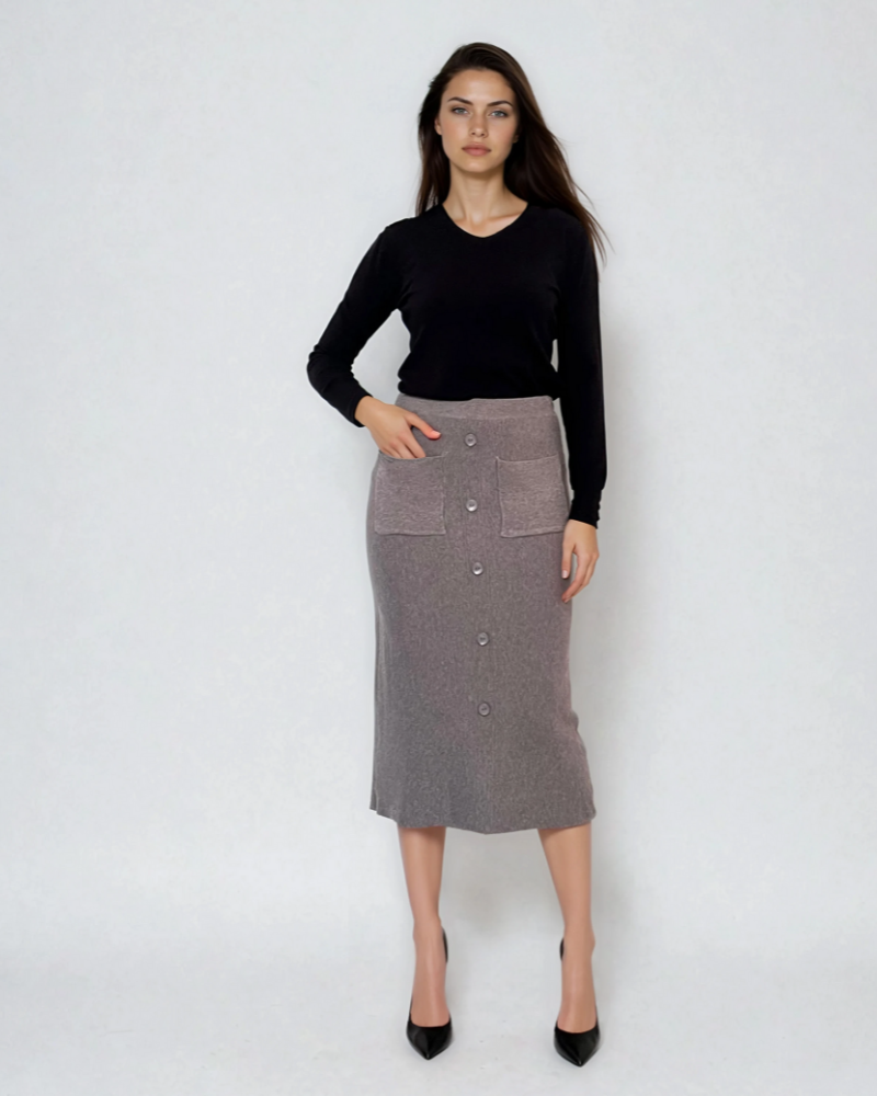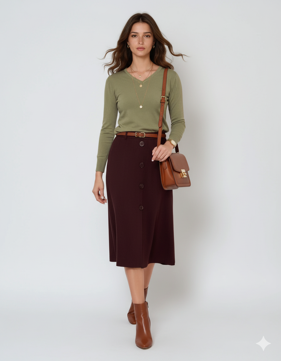 Pulover en-coeur cu nasturi pe mâneci kaki
