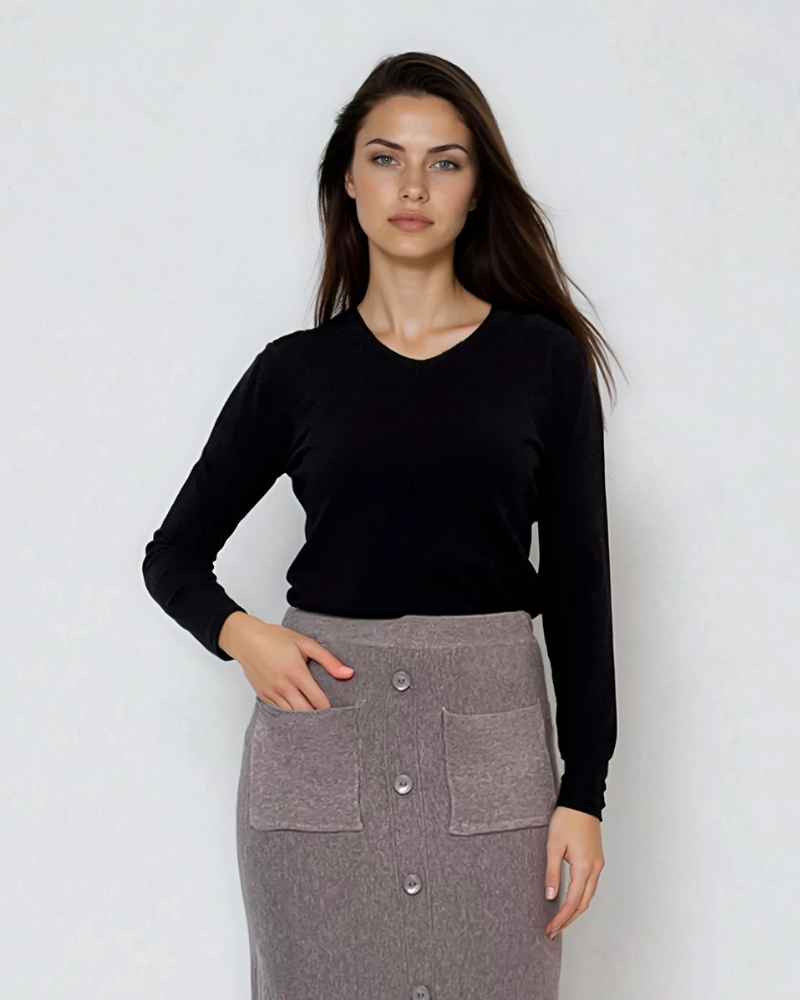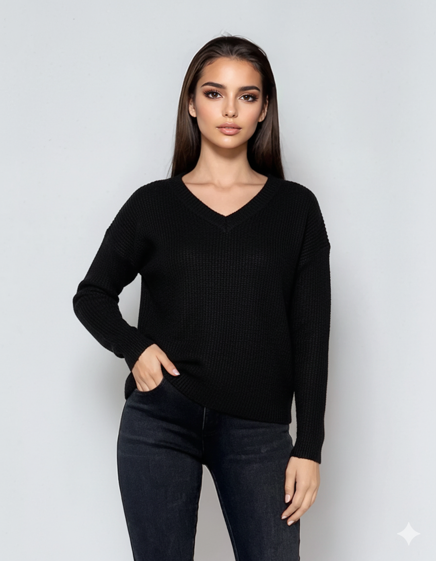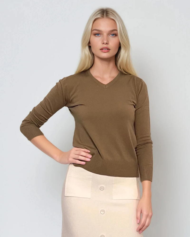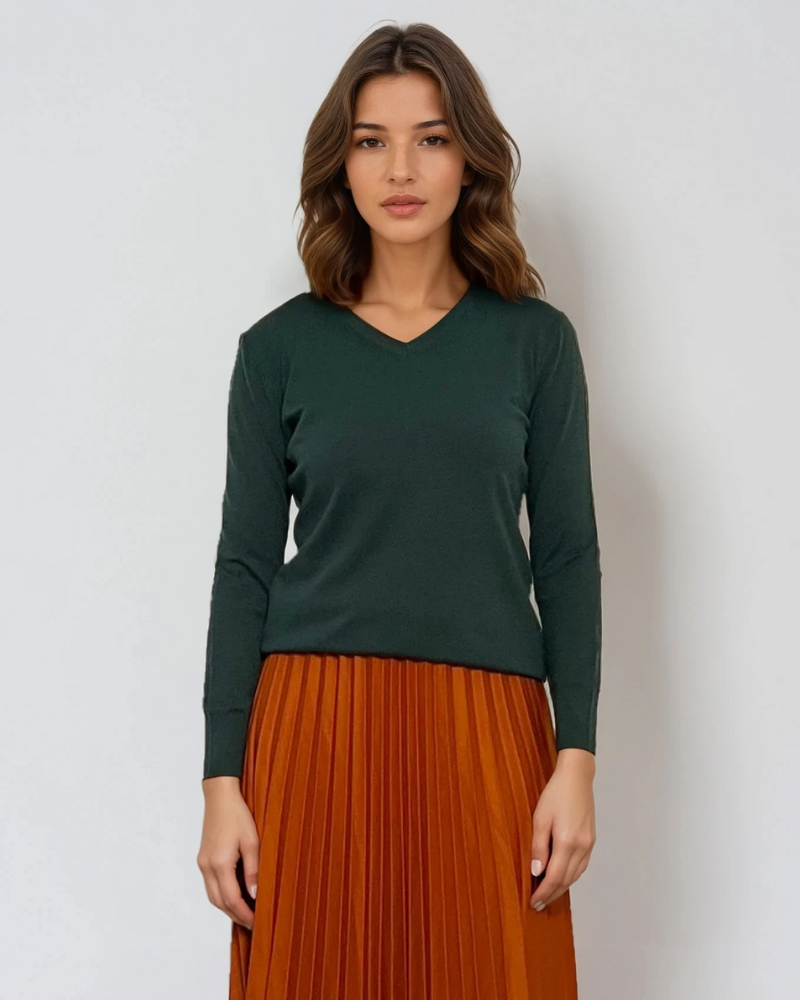 Pulover cu decolteu în V moale si confortabil verde-dark