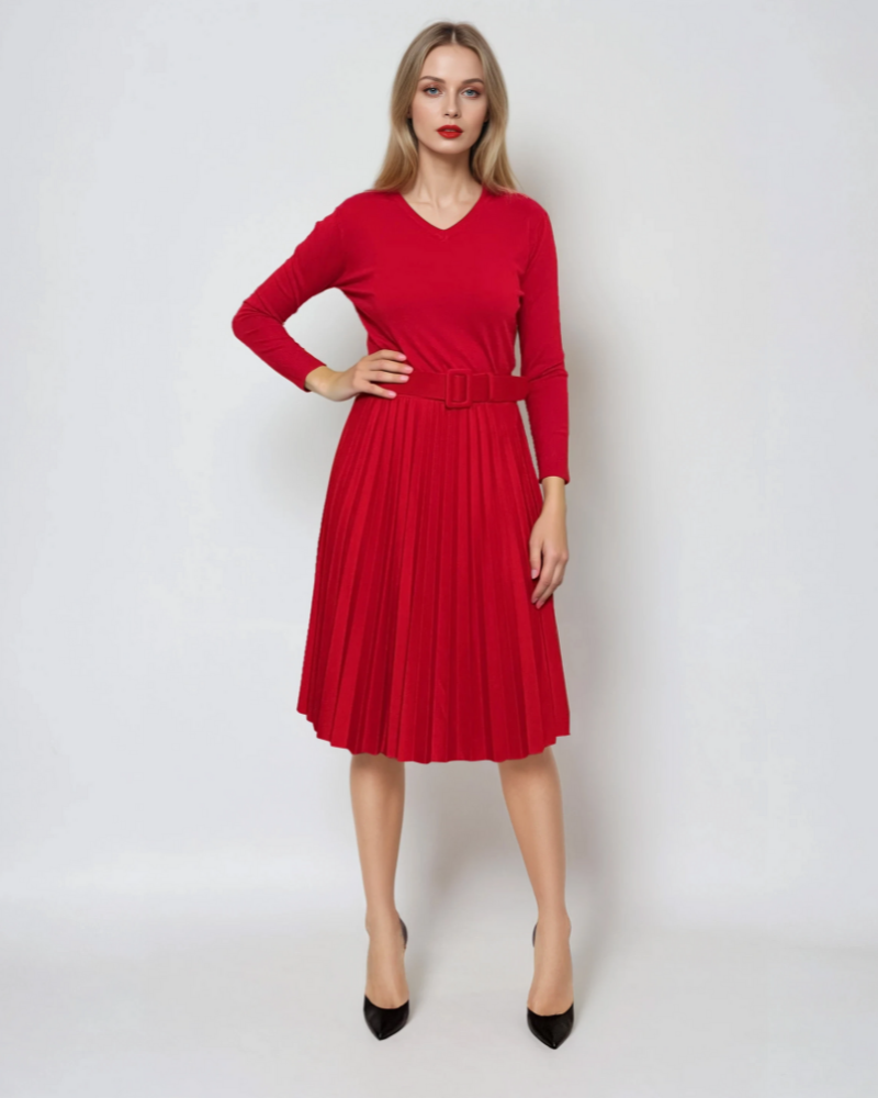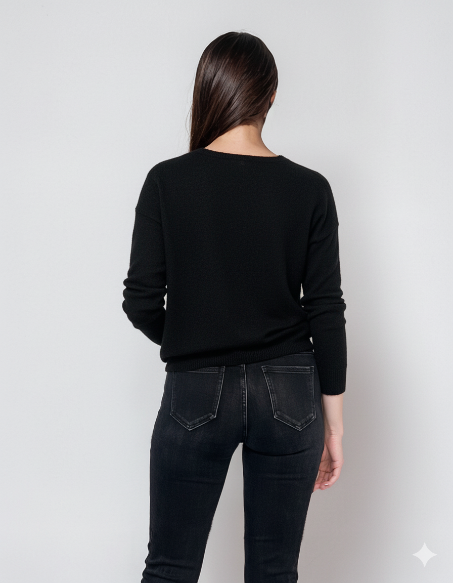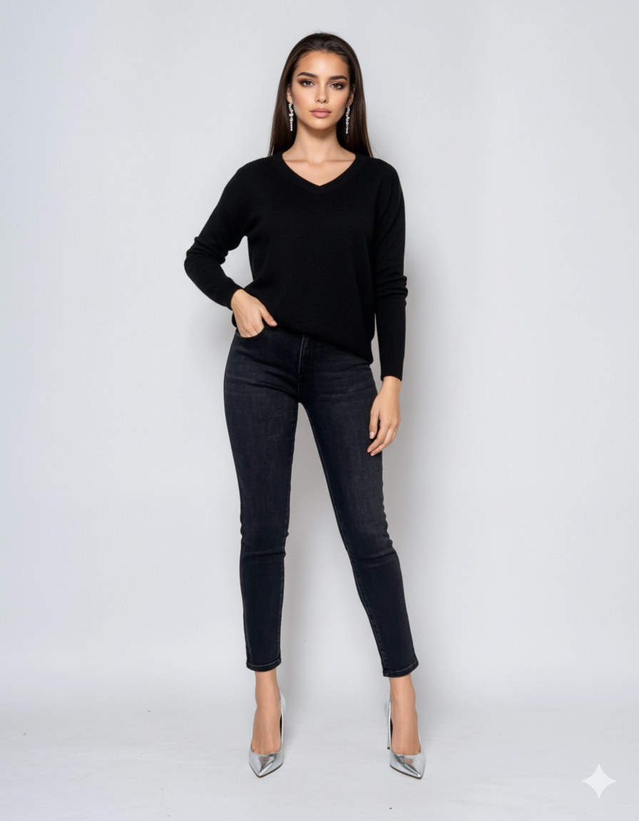 Pulover cu decolteu în V moale si confortabil verde-dark
