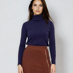 Pulover tip maletă bleumarin este alegerea perfectă pentru un look office clasic și sofisticat. Gulerul ridicat și textura fină oferă eleganță, iar nuanța închisă este ușor de asortat.