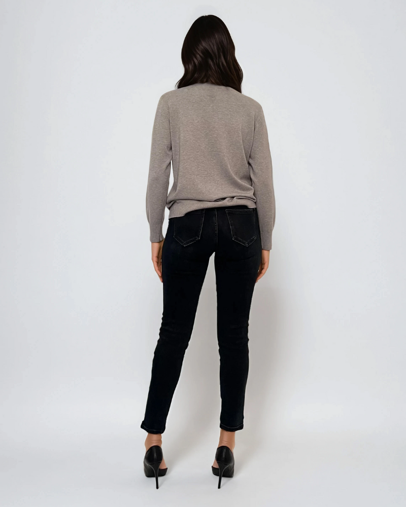 Pulover cu decolteu în V moale si confortabil mov-pruna