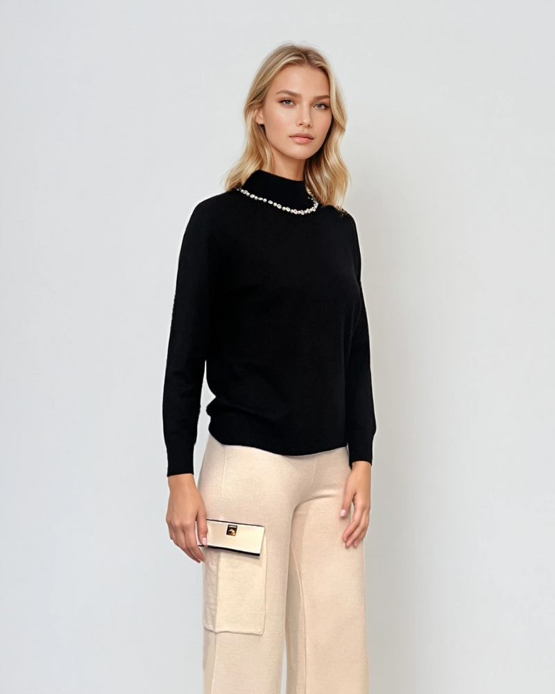 Pulover tricotat cu mânecă scurtă si perle albastru