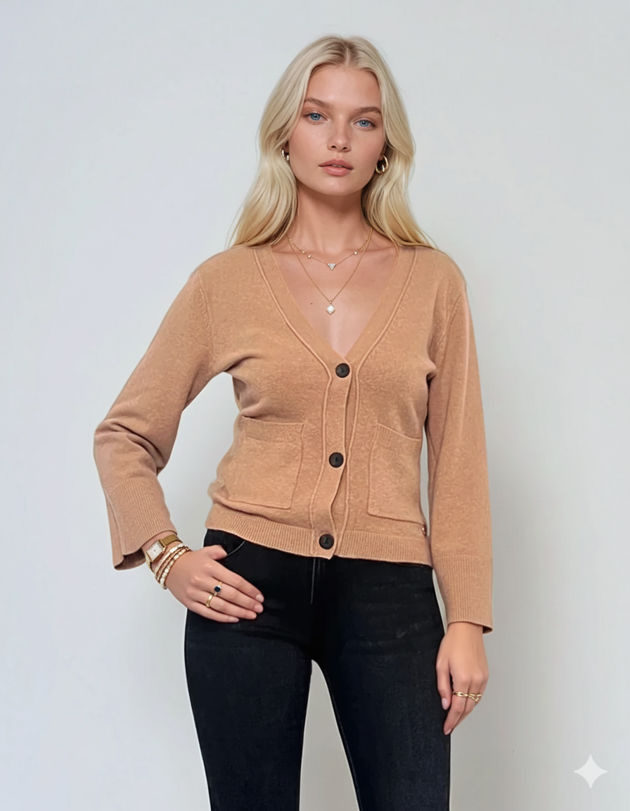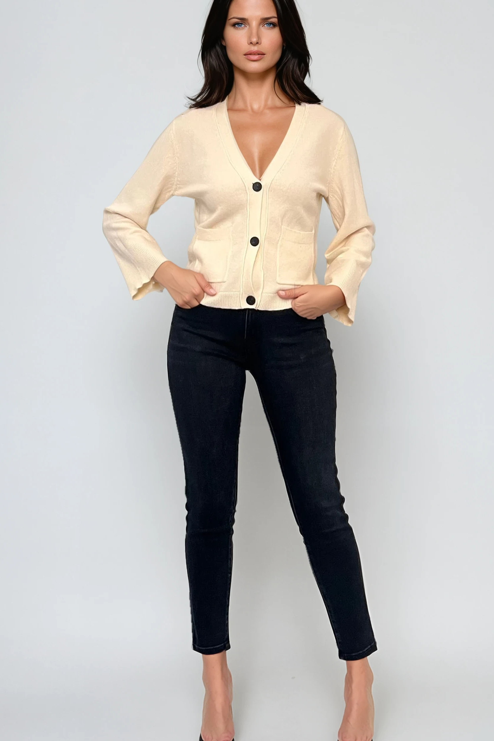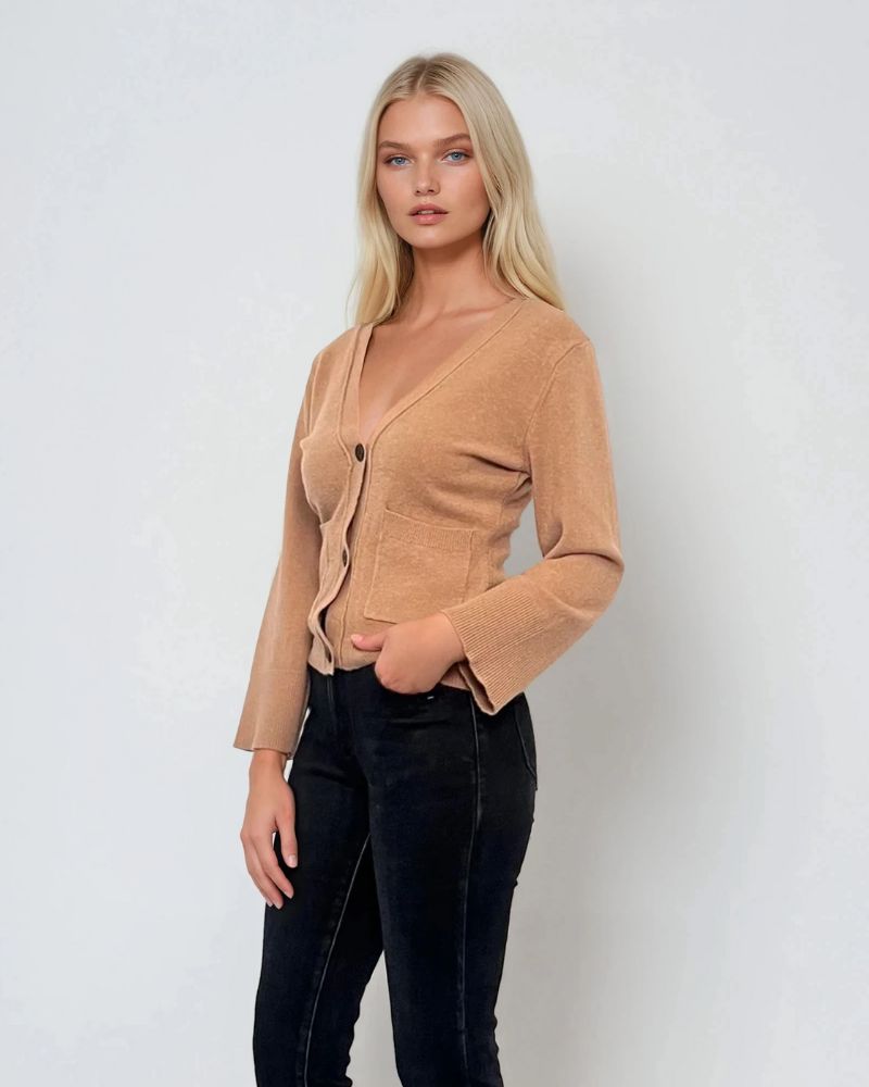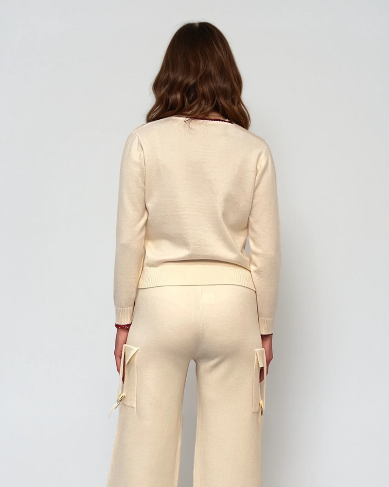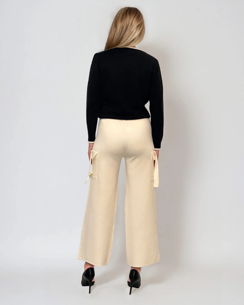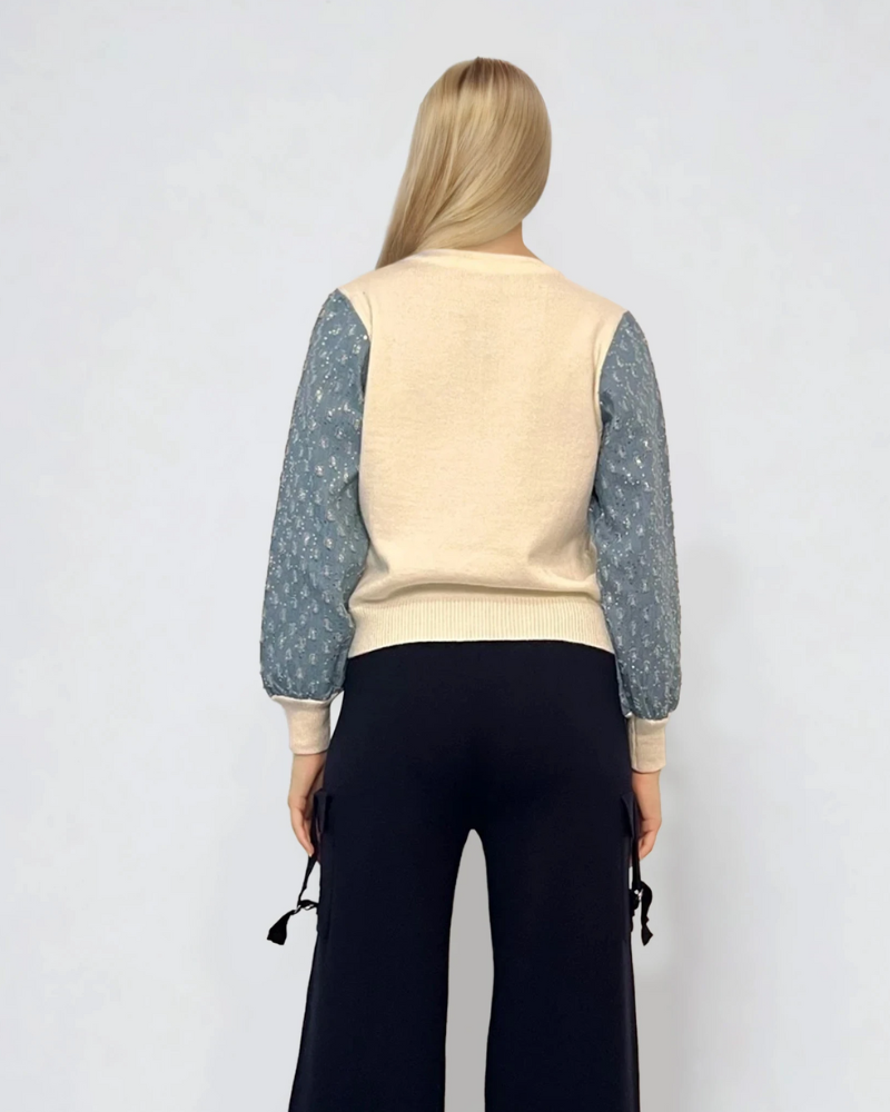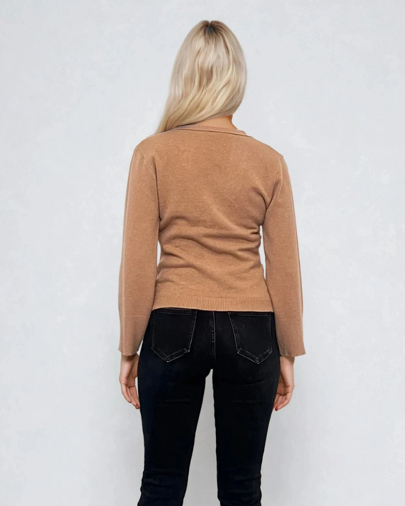 Pulover tricotat cu fundă ?i mânecă 3/4 beige