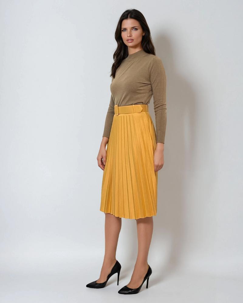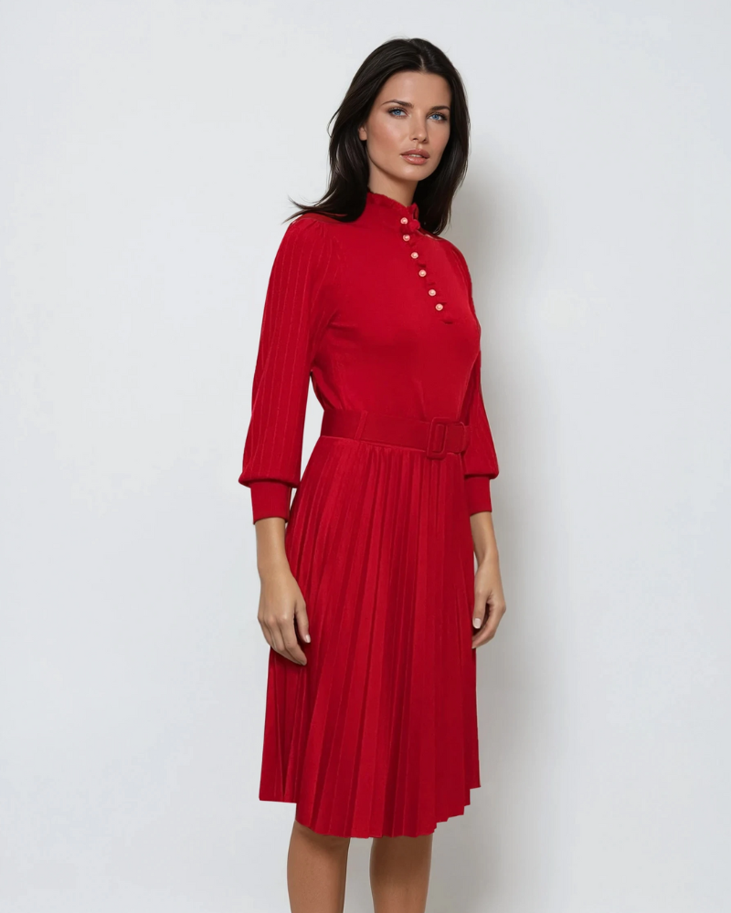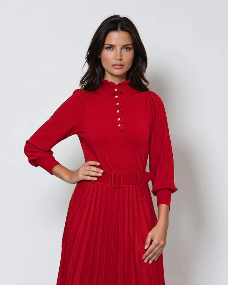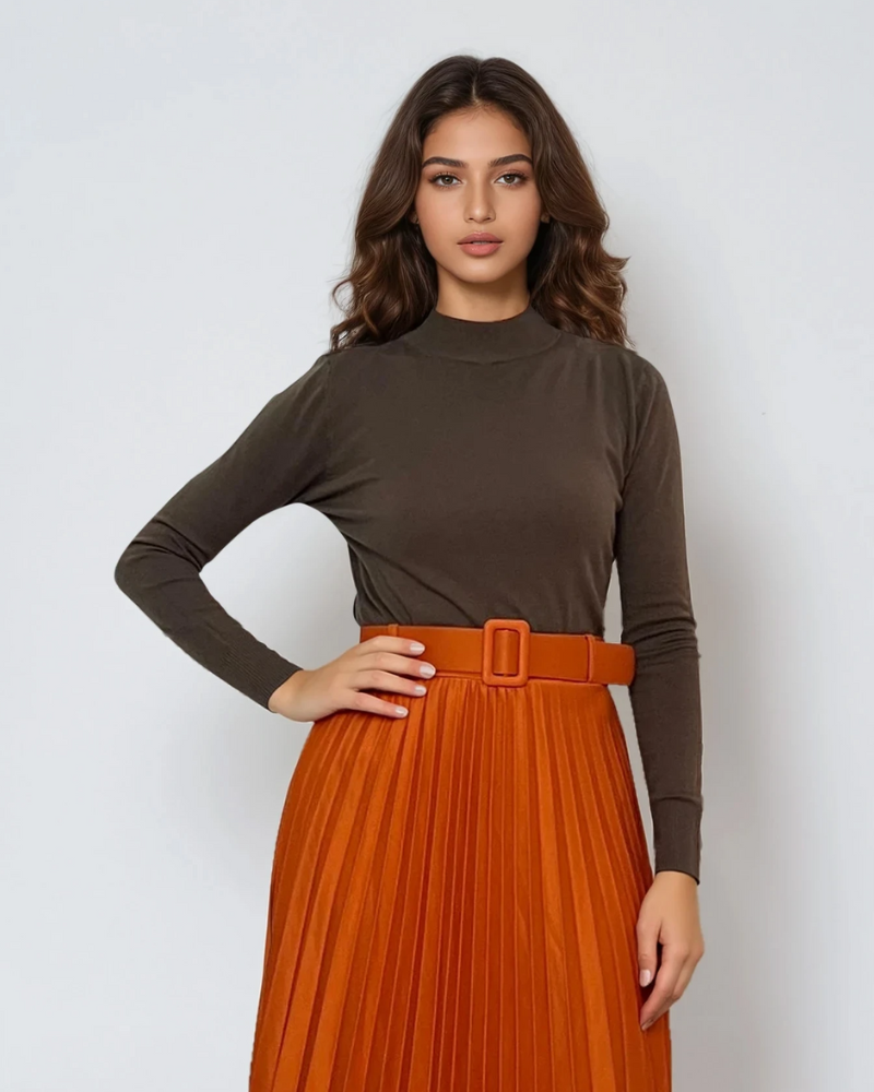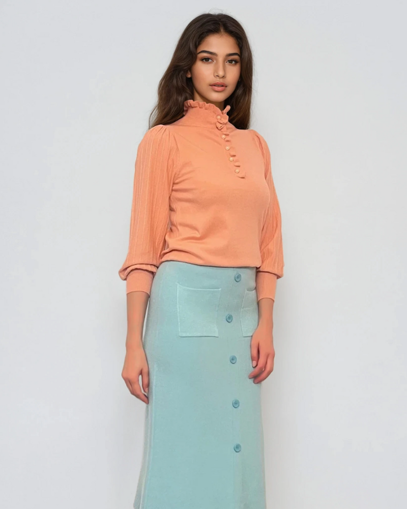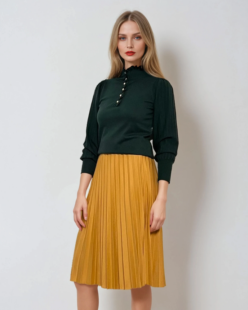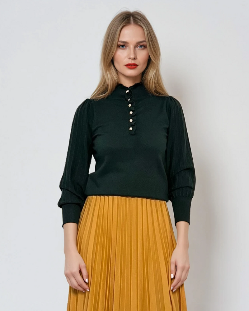 Pulover cu mâneci bufante si guler încretit verde-dark