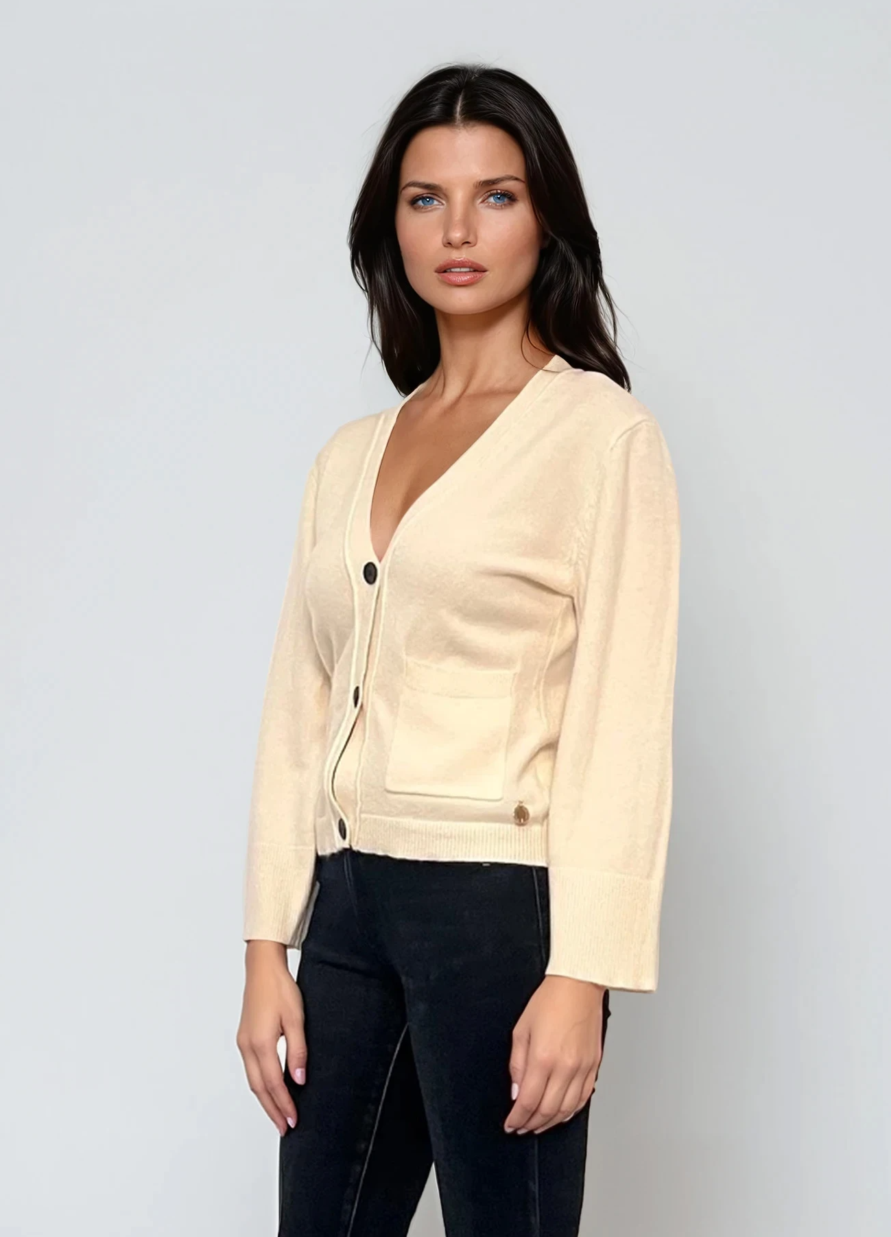 Pulover cu mânecă scurtă, guler cămașă și nasturi beige