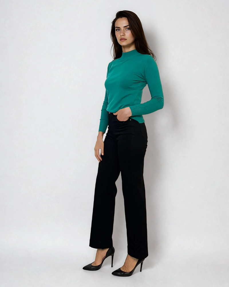 Pulover cu mânecă scurtă, guler cămașă și nasturi negru