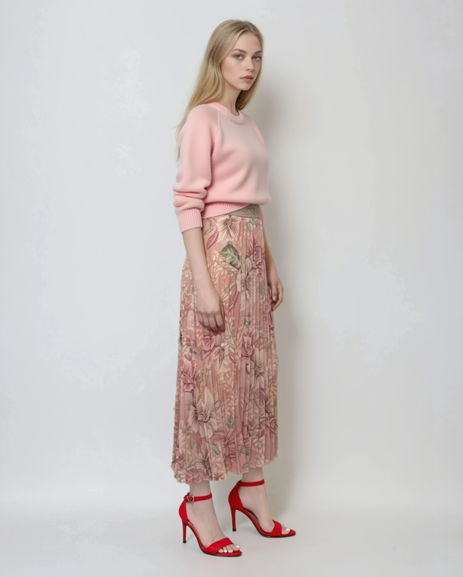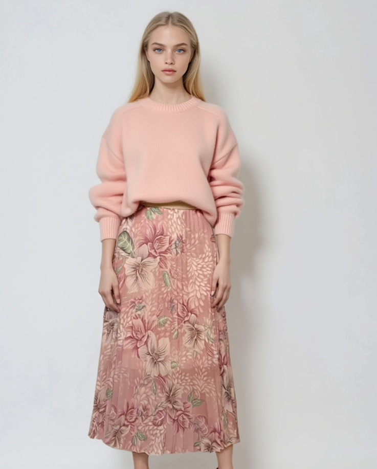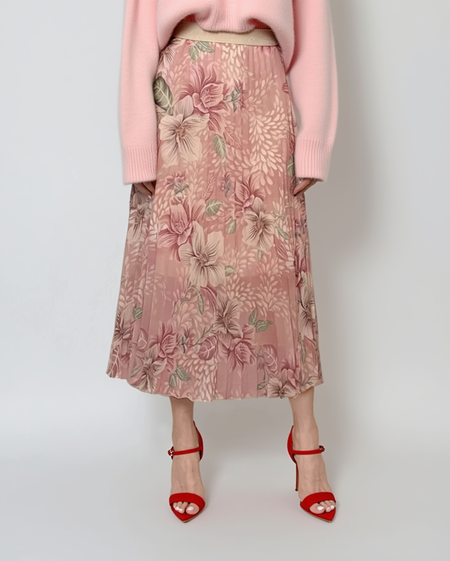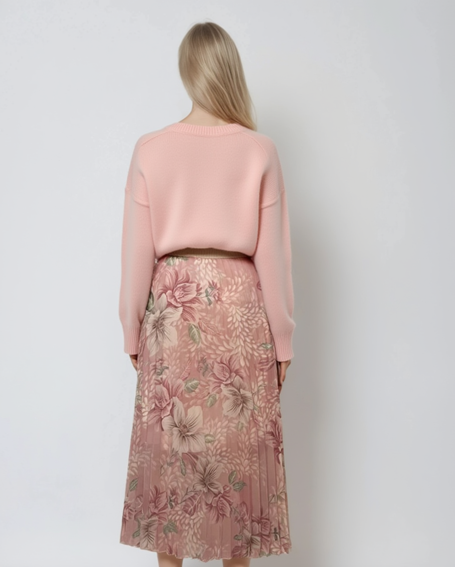 Fustă pantaloni largi cu print floral roz