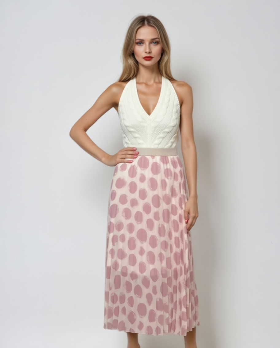 Fustă din tull cu buline mici roz