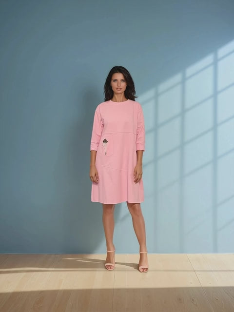 Rochie cu mânecă lungă și buzunar roz aduce un plus de delicatețe și feminitate garderobei tale. Croiala lejeră și materialul confortabil o transformă într-o piesă versatilă, potrivită pentru purtare zilnică.