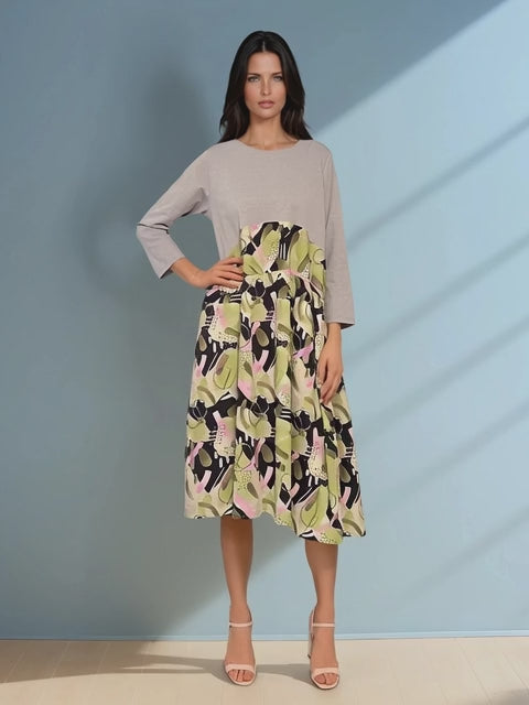 Rochie largă cu print la poale și mânecă 3/4 gri