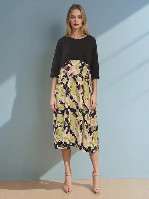 Rochie largă cu print la poale și mânecă 3/4 negru