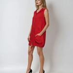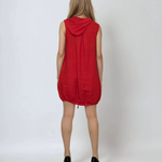 Rochie din in fără mâneci cu glugă și șiret pe margine rosu