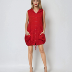 Rochie din in fără mâneci cu glugă și șiret pe margine roșu este o piesă vibrantă și confortabilă, ce adaugă un strop de culoare garderobei tale. Designul modern, împreună cu croiala largă și materialul natural, o fac ideală pentru zile călduroase și ieșiri casual.