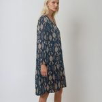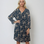 Rochie midi lejeră cu print și decolteu în V albastră