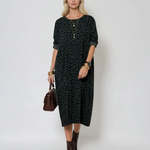 Rochie lungă din raiat cu animal print gri închis aduce un aer sofisticat și versatil garderobei tale. Materialul raiat conferă textură și plăcere la atingere, iar imprimeul animal print în nuanțe de gri închis adaugă un plus de stil și eleganță.