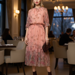 Rochie lungă din voal fluid cu volan jos și print floral roz