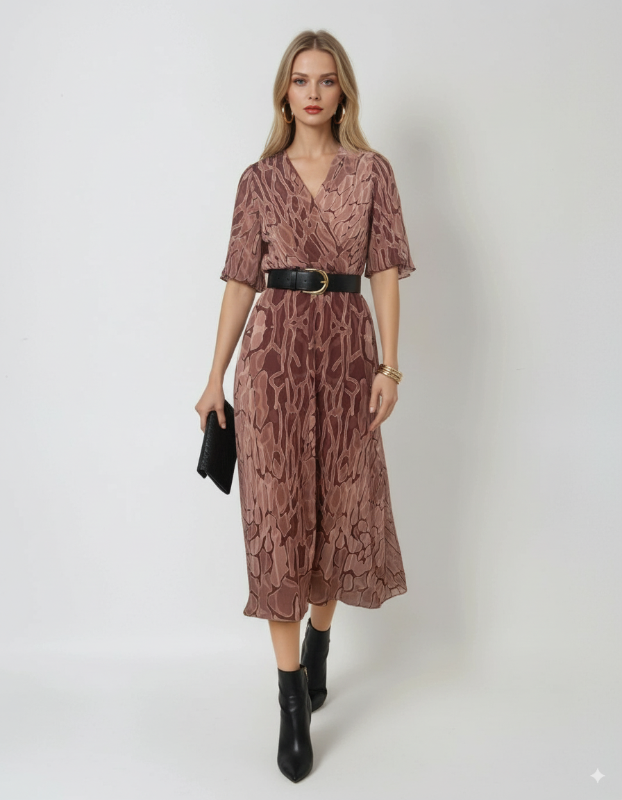 Rochie lungă vaporoasă din voal cu print floral beige este alegerea perfectă pentru evenimente de zi sau seri elegante de vară. Nuanța caldă pune în valoare imprimeul floral delicat, iar decolteul adânc în V oferă un plus de feminitate. Elasticul din talie se adaptează mai multor conformații, iar căptușeala moale din vâscoză sporește confortul.