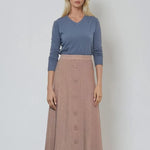 Pulover cu decolteu în V moale și confortabil albastru jeans este alegerea perfectă pentru un look relaxat și elegant. Este ideal pentru purtat sub sacouri datorită croielii lejere și a texturii fine.