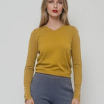 Pulover en-coeur cu nasturi pe mâneci mustar