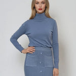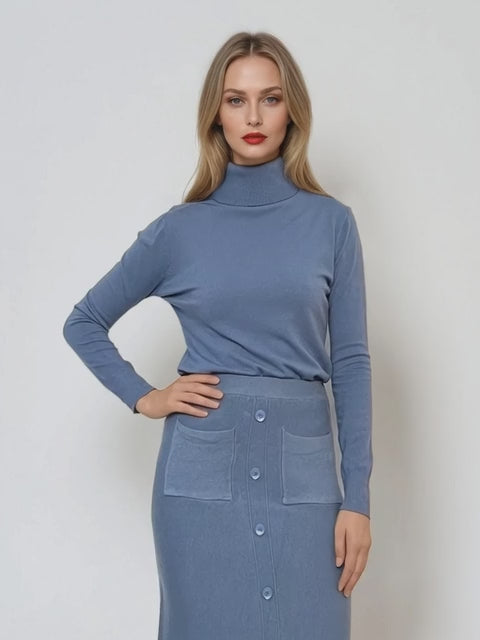 Pulover tip maletă albastru jeans este alegerea ideală pentru un look relaxat dar rafinat. Nuanța de denim aduce prospețime, iar textura moale oferă un confort excelent în zilele răcoroase.
