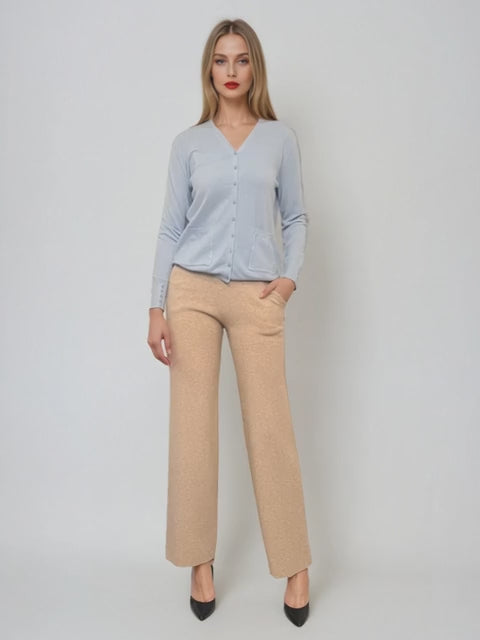 Pantaloni tricot office beige