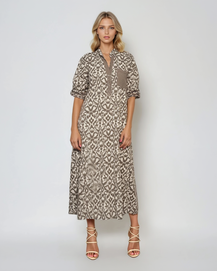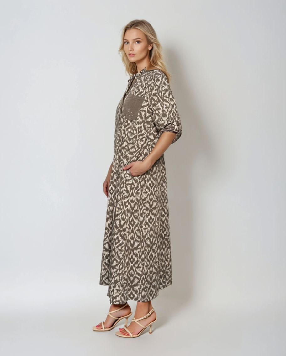 Rochie midi mânecă lungă animal print maro