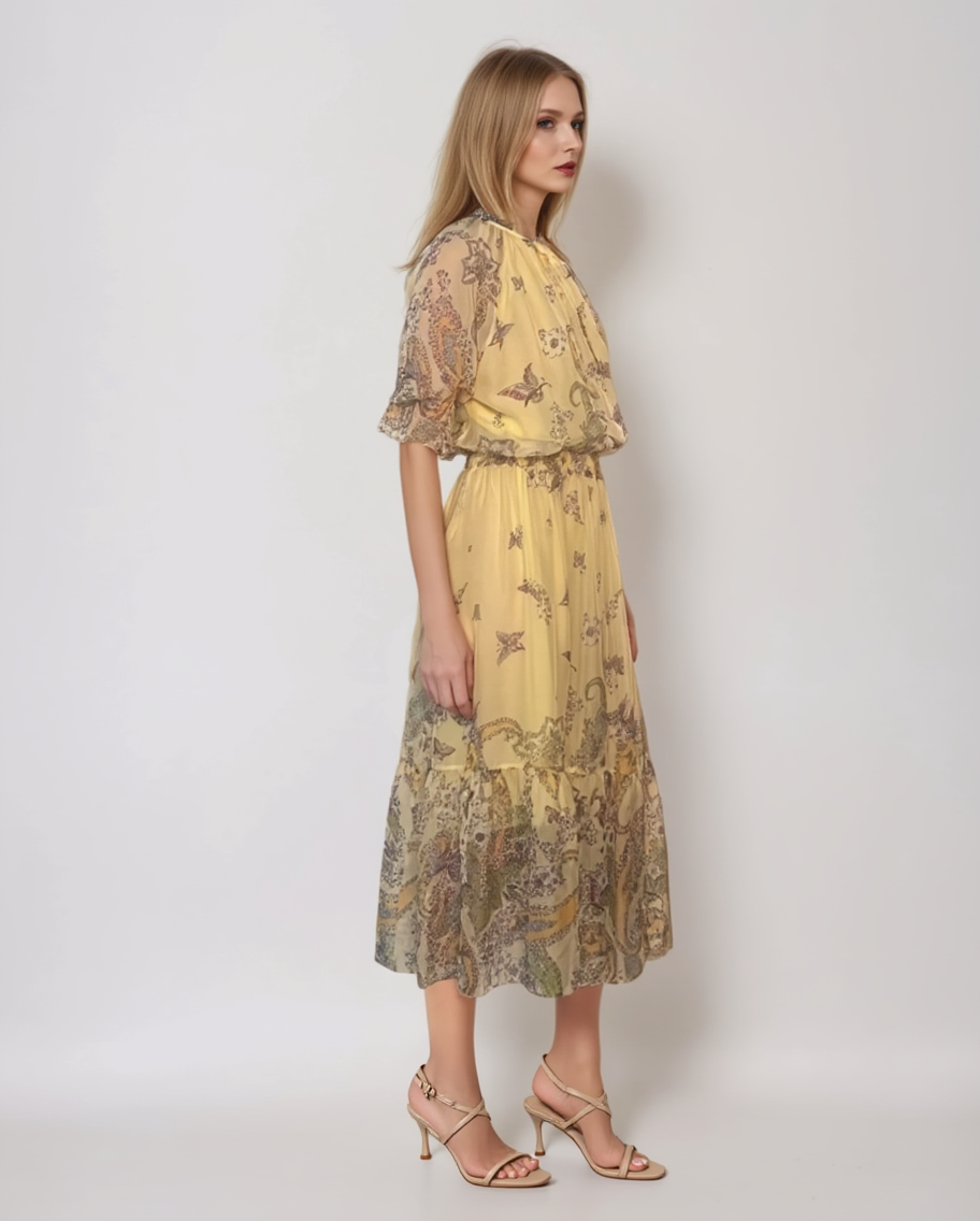 Rochie midi cu mânecă lungă și animal print verde