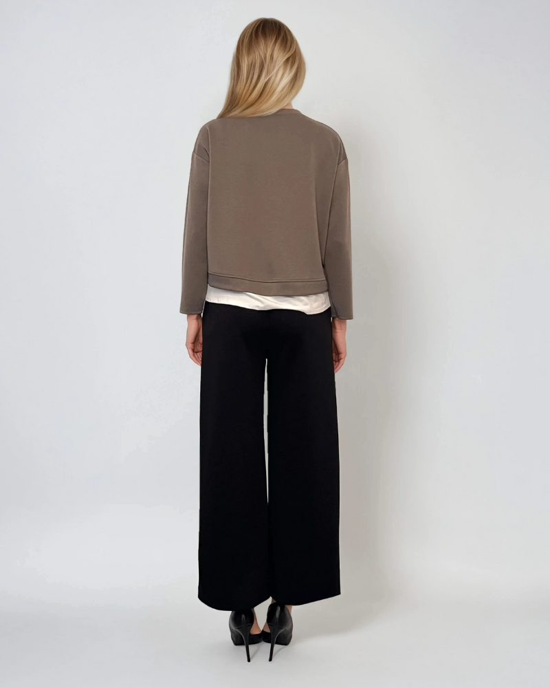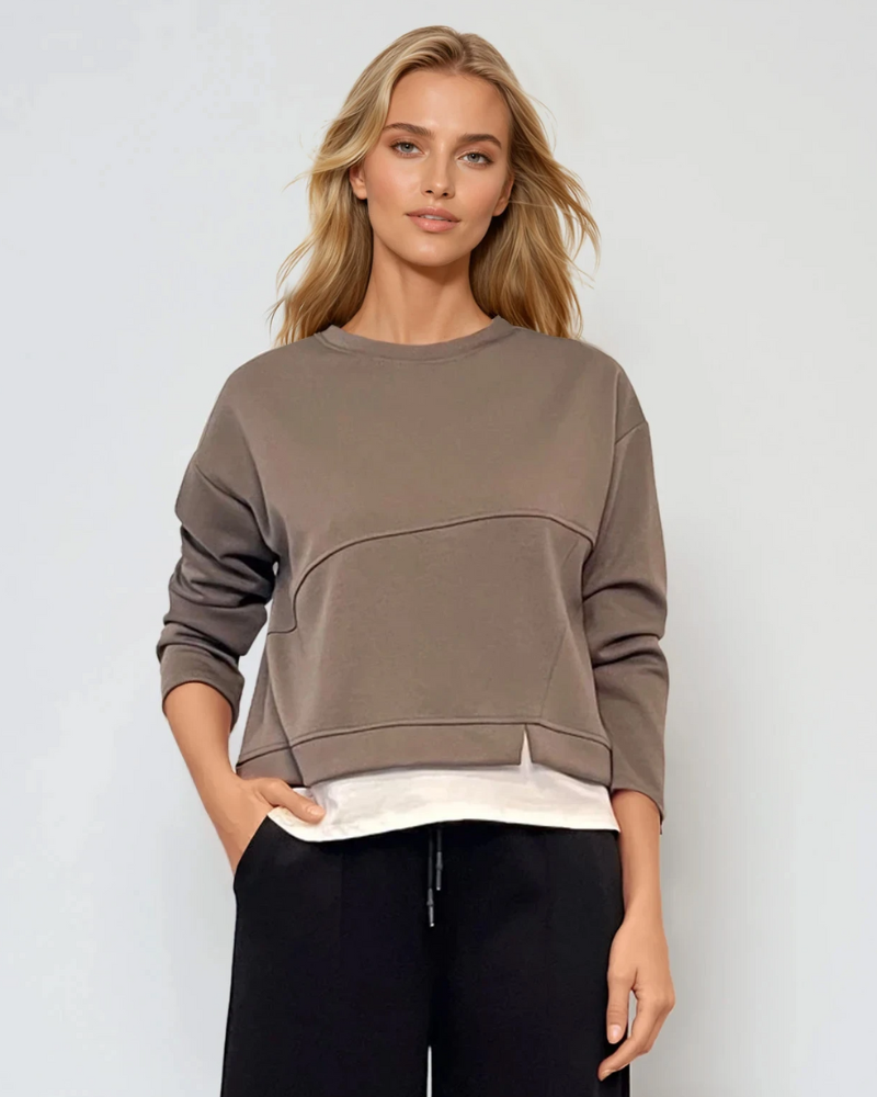 Bluză cu mânecă lungă cu inserție albă kaki, potrivită pentru zile relaxate sau ținute sport-casual. Detaliul alb la talie creează un efect de stratificare, adăugând originalitate. Culoarea versatilă și croiala confortabilă o fac ușor de integrat în orice outfit de zi.