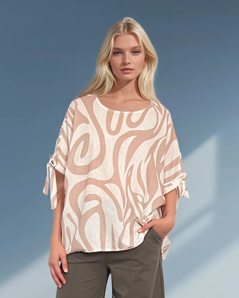 Bluză damă lejeră cu dungi și mânecă desfăcută beige