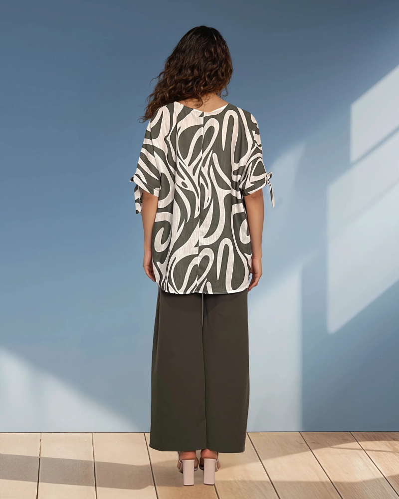 Bluză damă lejeră cu dungi și mânecă desfăcută kaki se remarcă prin croiala amplă și designul modern, fiind alegerea ideală pentru ținute casual confortabile și stilate. Modelul cu mâneci deschise adaugă un aer relaxat și contemporan, perfect pentru zilele călduroase.