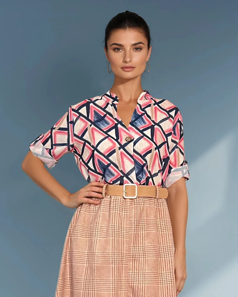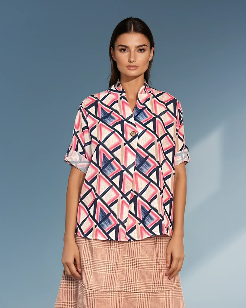 Bluză guler tunică cu un nasture bleumarin este o piesă clasică și versatilă, ideală pentru ținute elegante și casual. Nasturele de la guler oferă un accent subtil și modern, iar croiala lejeră asigură confort sporit.
