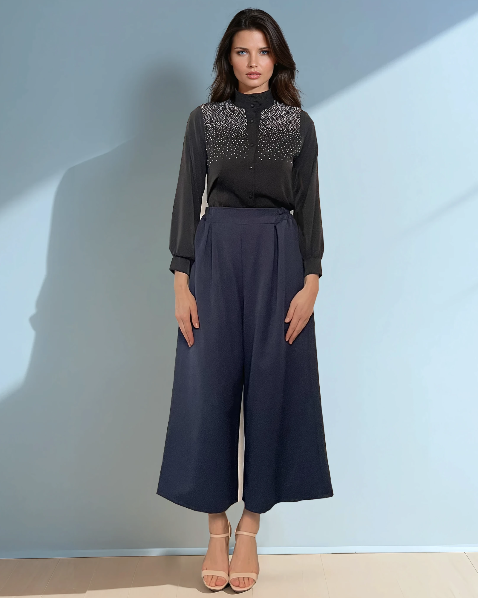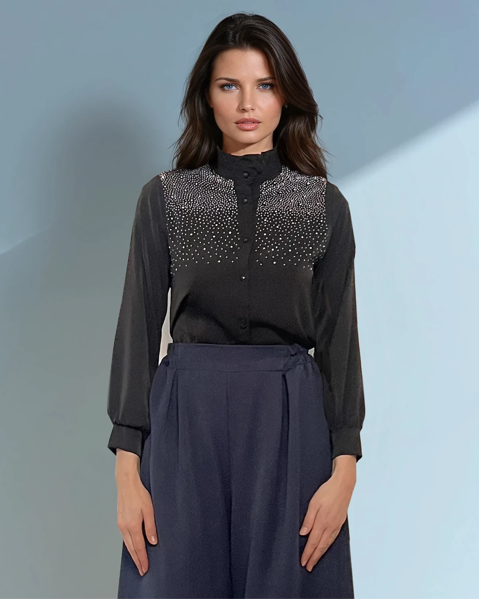 Strasurile fine oferă subtilitate și strălucire, iar materialul ușor și confortabil transformă această cămașă într-o piesă must-have în garderoba ta.