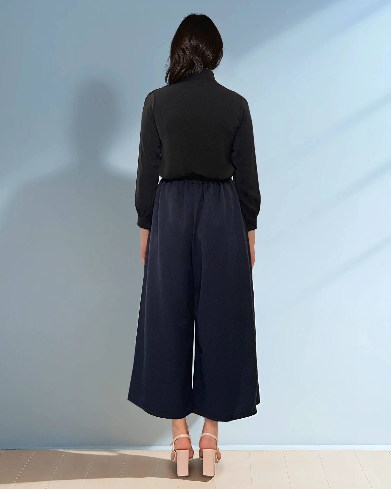Cămașă cu strasuri și volan la guler neagră combină eleganța clasică cu detalii moderne, fiind potrivită pentru ocazii speciale sau seri elegante. Croiala lejeră și volanul delicat de la guler adaugă un plus de rafinament și stil.