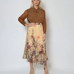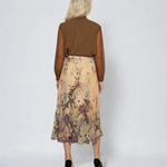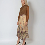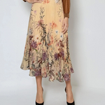 Fustă lungă din voal plisat cu print floral galben
