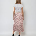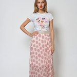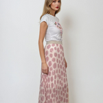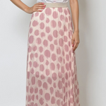Fustă lungă plisată cu buline și bandă elastică alb-roz
