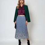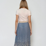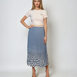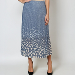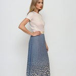 Fustă lungă plisată cu buline și bandă elastică albastru jeans