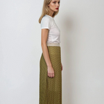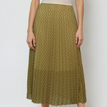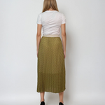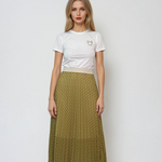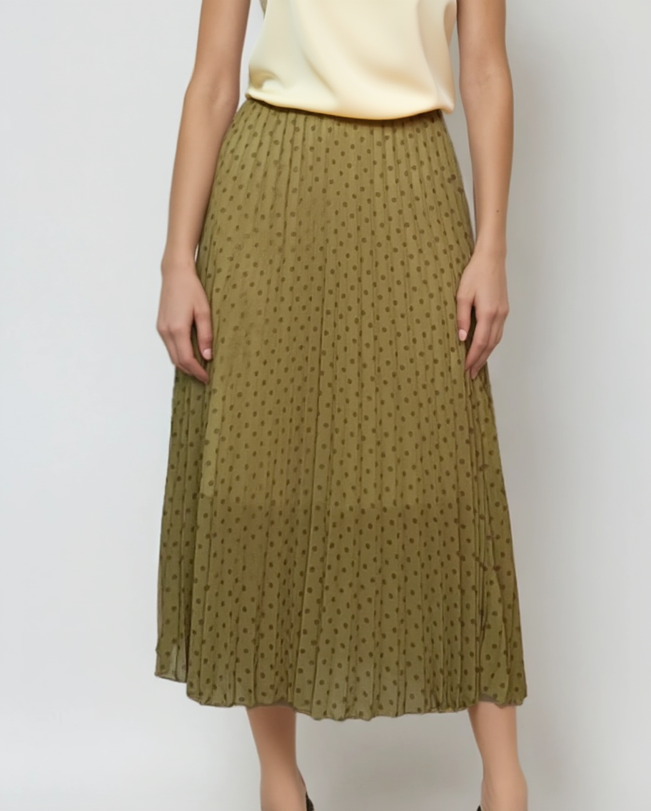 Fustă lungă plisată cu buline și bandă elastică vernil