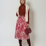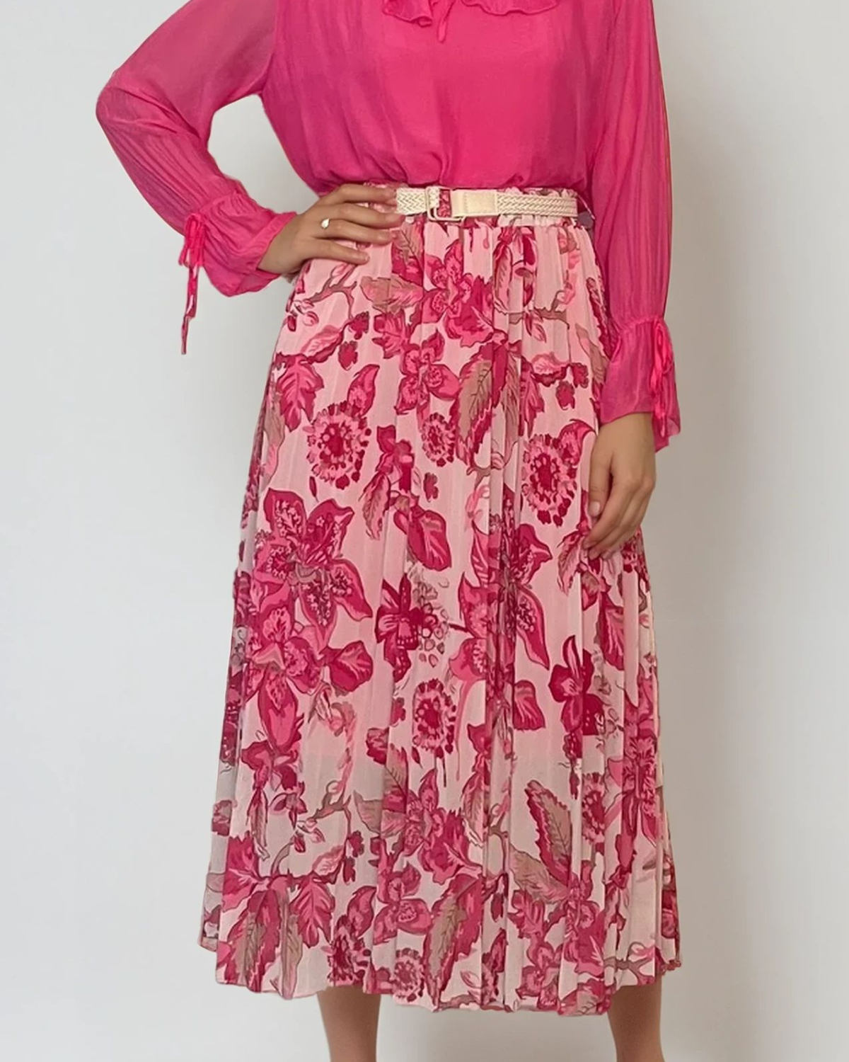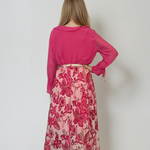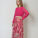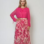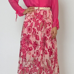 Fustă lungă plisată cu curea și print floral ciclam