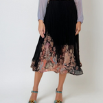 Fustă lungă plisată cu print floral și crinolină fluidă negru