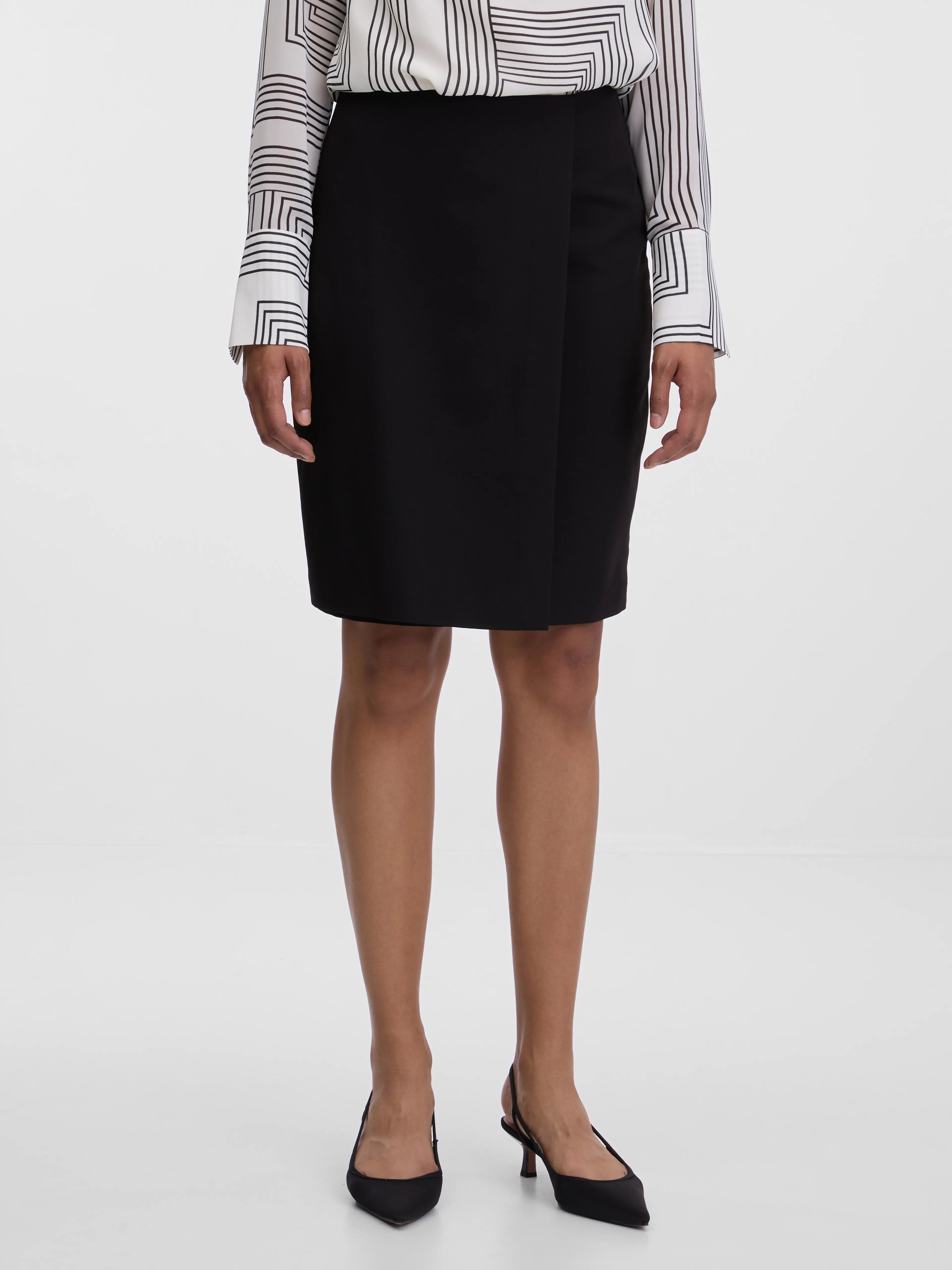 Fustă midi dreaptă cu aspect petrecut de birou neagră ORSAY negru