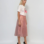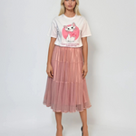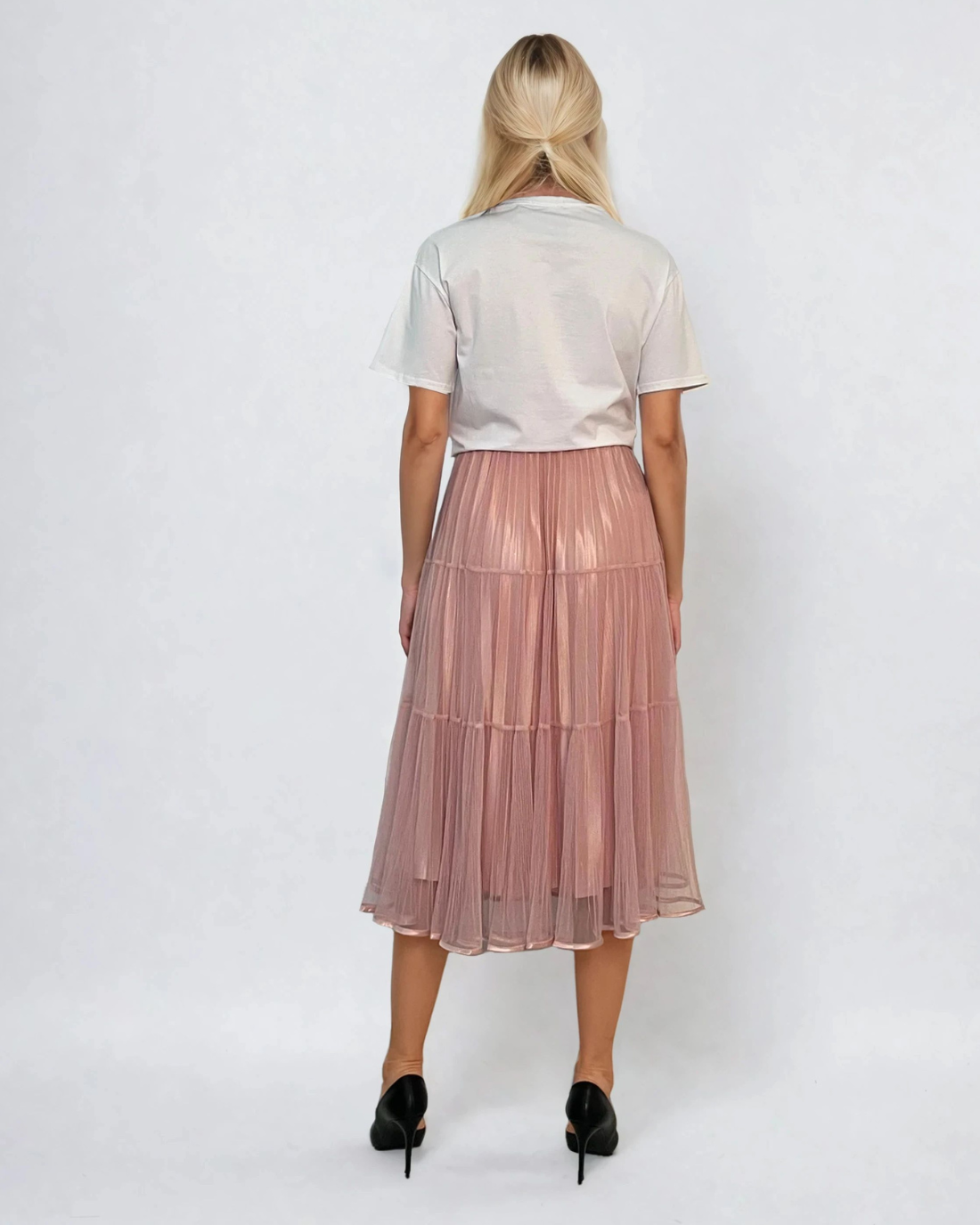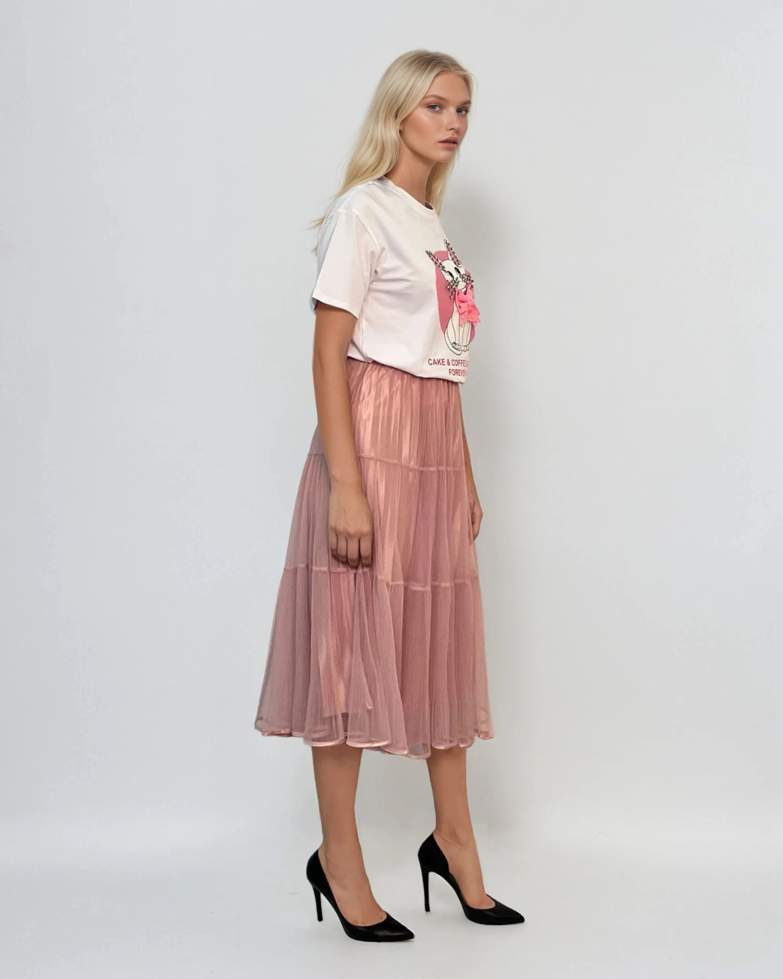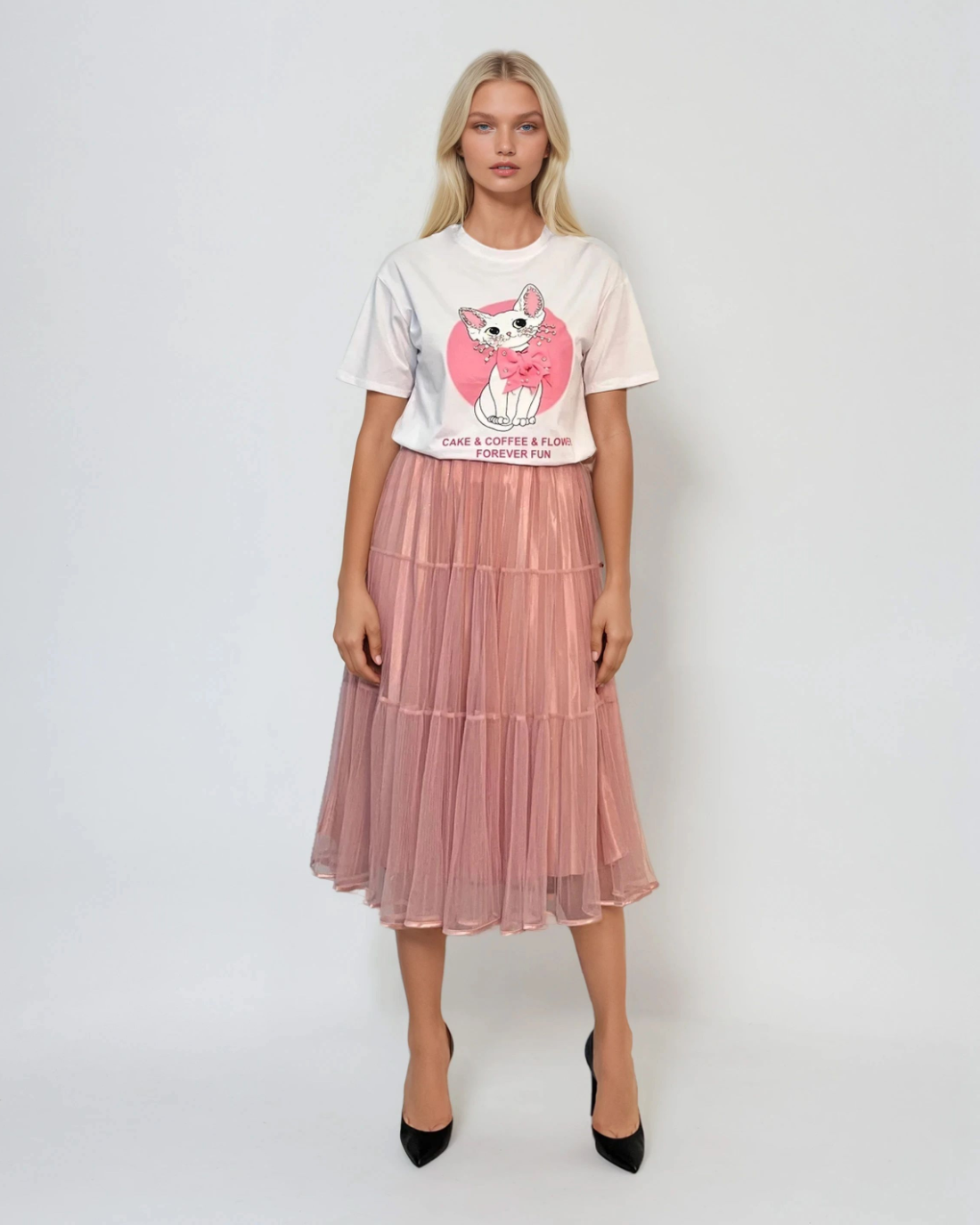 Fustă tull cu volane, sclipici și bordură satin roz este alegerea ideală pentru ținutele rafinate și feminine. Volanele ample și detaliile cu sclipici oferă o apariție strălucitoare, perfectă pentru petreceri, aniversări sau evenimente speciale.