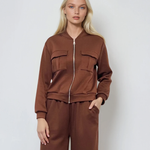 Jachetă maro cu buzunare și fermoar, perfectă pentru un look casual și confortabil. Croiala atentă și culoarea caldă adaugă un plus de eleganță ținutelor de zi cu zi.