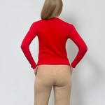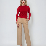 Pulover cu volan plisat la mânecă și gât roșu, o alegere vibrantă pentru un look plin de energie. Volanele fine adaugă un plus de feminitate, iar croiala lejeră îl face potrivit pentru birou sau plimbări relaxante.