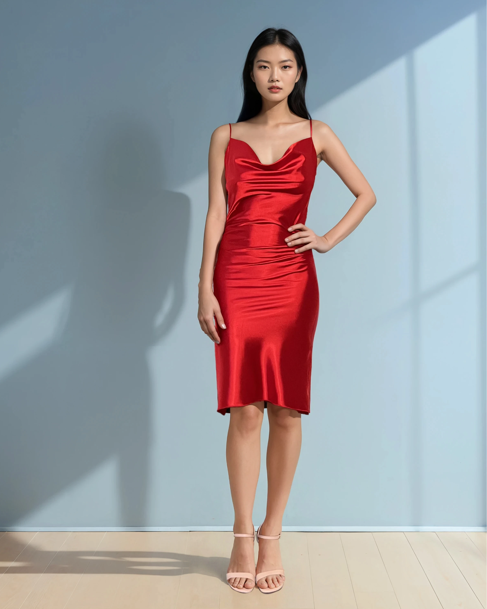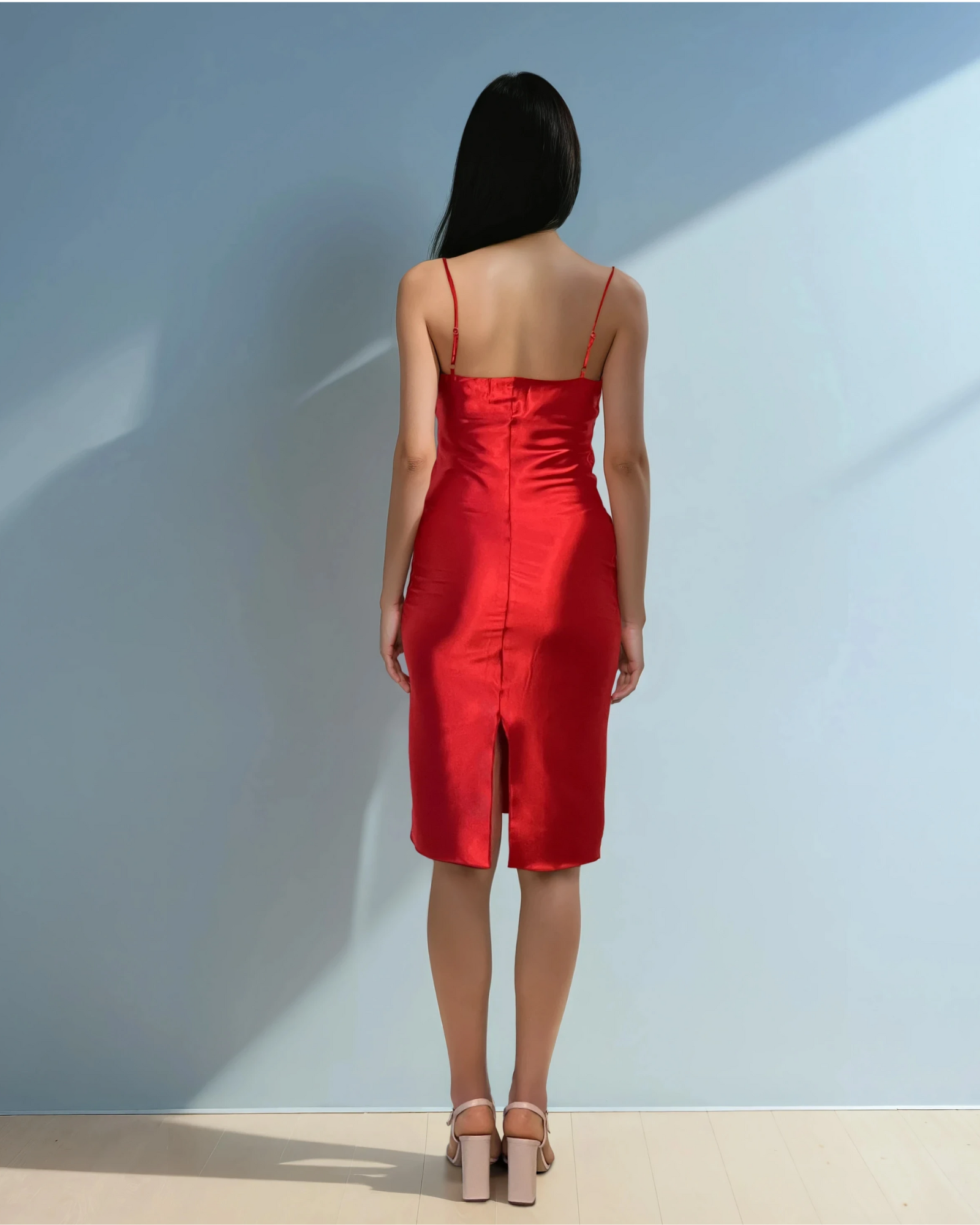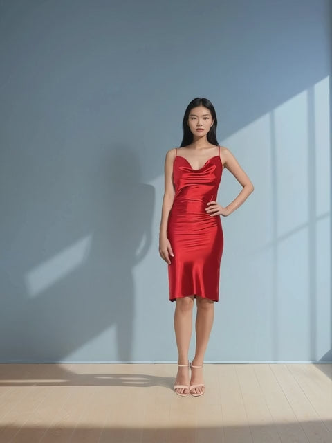 Rochie din satin cu bretele subțiri roșu emană eleganță și feminitate prin textura fină și luciul discret al materialului. Croiala delicată urmărește linia corpului, oferind o siluetă armonioasă și sofisticată, perfectă pentru evenimente speciale sau seri festive.