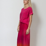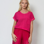Tricou din in cu buzunar pe partea stângă ciclam se remarcă prin culoarea sa vibrantă și designul minimalist. Materialul natural asigură confort și respirabilitate, iar buzunarul lateral adaugă o notă practică și modernă.