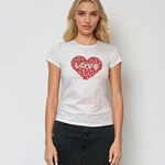 Tricou mulat din bumbac cu print inimă roz pe bust și capse alb