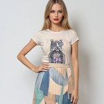 Tricou mulat din bumbac cu print tigru fashionable crem