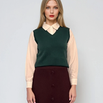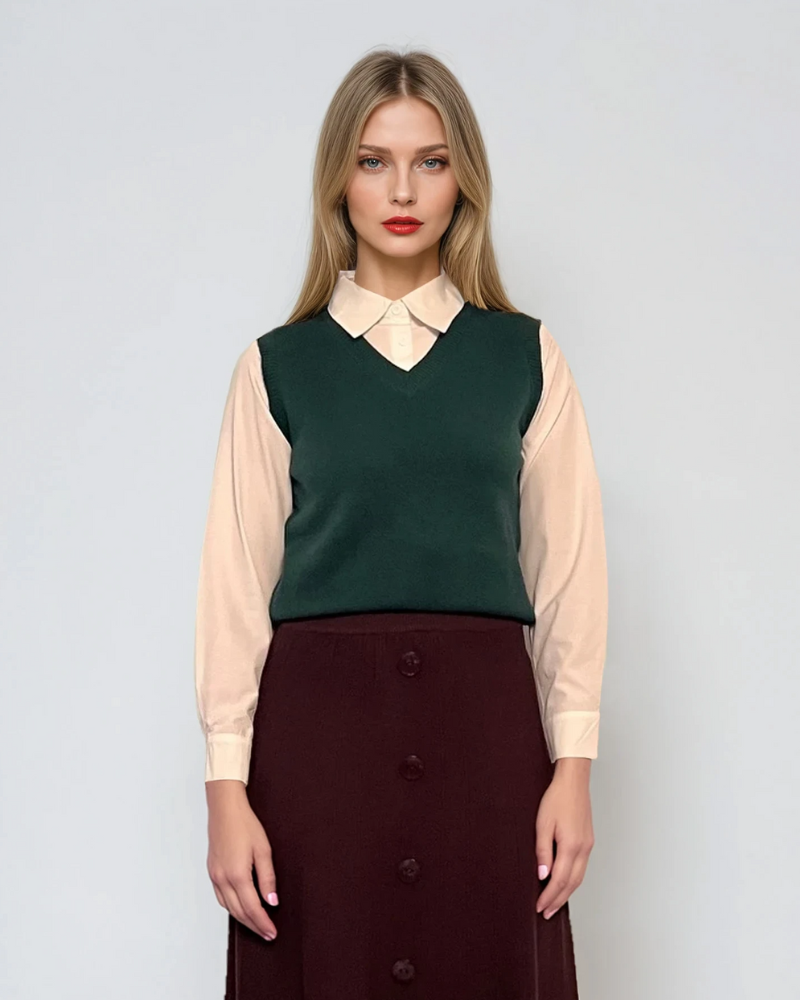 Vestă cu mâneci și guler cămașă verde adaugă un strop de prospețime și eleganță în ținutele tale. Este ideală pentru a fi purtată la birou sau la întâlniri de zi, oferind o combinație între stil modern și confort absolut.